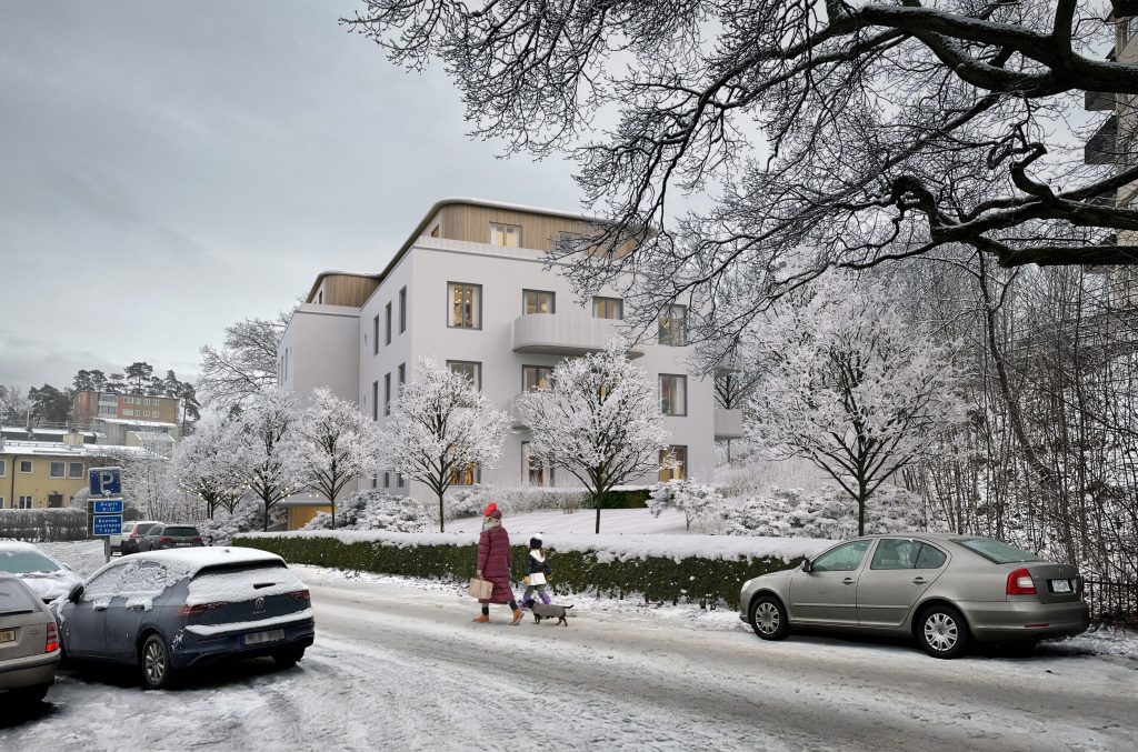 Nya träd planteras längs gatan, vilket bidrar till en lummig och grön miljö. En trädgårdsliknande innergård skapas, där de naturliga omgivningarna integreras med byggnaden. Målet är att harmonisera byggnaden med det befintliga landskapet och bevara områdets naturliga skönhet.